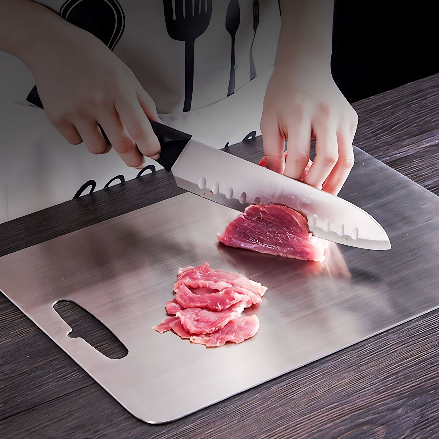 Traditional cutting boards can harbor bacteria and release harmful microplastics into your food. Our stainless steel cutting board provides a safe, clean surface that protects your family's health.