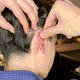 Clean and dry the area behind your ears, then apply the corrector as per the instructions provided.