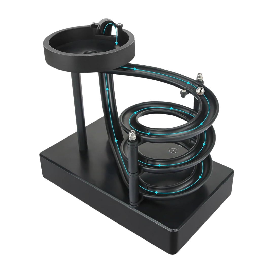 The Venator™ Infinite Marble operates using a combination of kinetic energy, magnetic force, and precision engineering to create a mesmerizing illusion of perpetual motion. Here’s how it works: