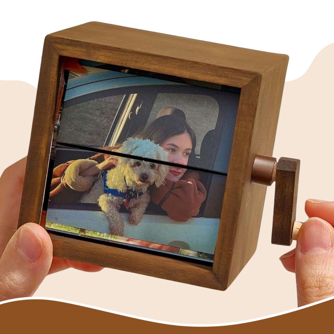 This handcrafted device features a hand-crank mechanism that seamlessly flips through images, creating a smooth animated effect. Simply turn the handle, and your photos come to life in a mesmerizing motion, adding a touch of nostalgia and artistry to your space.