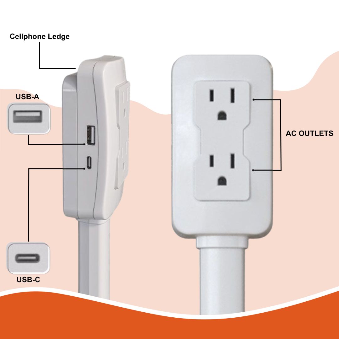 Tight spaces? No problem! The 180° rotating plug adjusts to fit behind furniture, nightstands, or workstations without blocking other outlets.