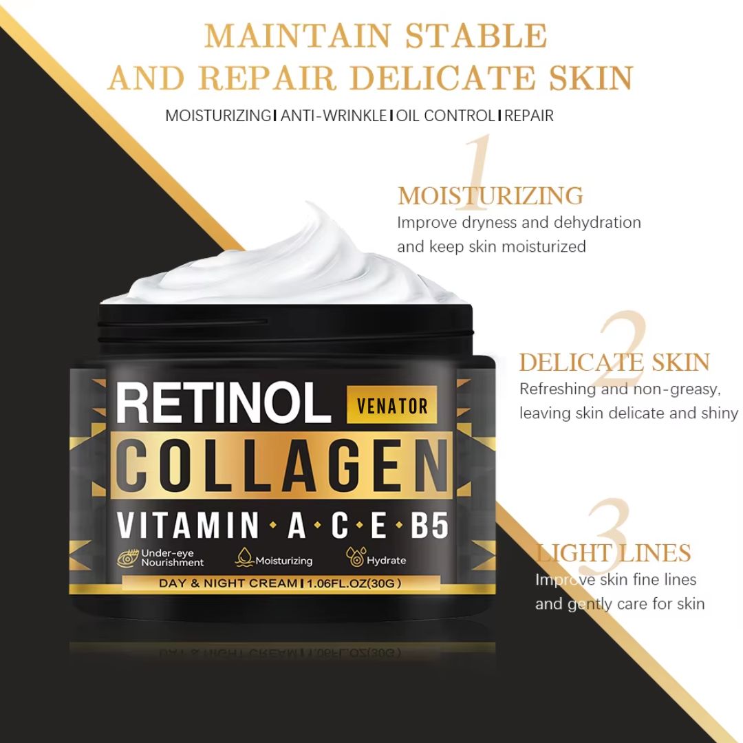 Tired of seeing dull, tired skin in the mirror? Pollution, stress, and shaving take a toll, leaving behind wrinkles and dryness. Venator™ fights back with retinol and collagen to smooth fine lines, hydrate deeply, and restore your skin’s glow, without the greasy feel.
