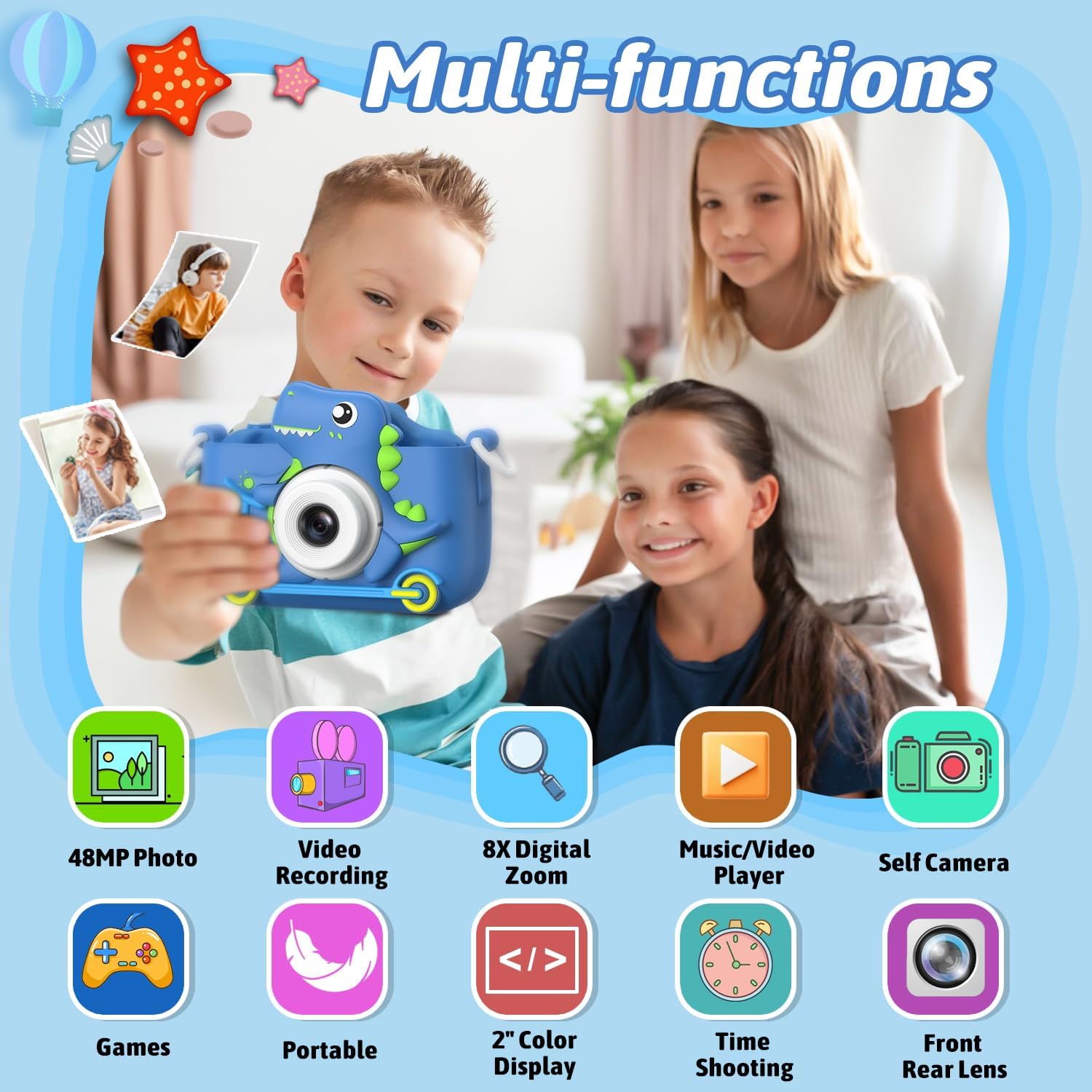 Yes! It’s designed to give children a real photography experience, featuring 48MP photo resolution and 1080P HD video, so they can capture sharp, vibrant memories all by themselves.