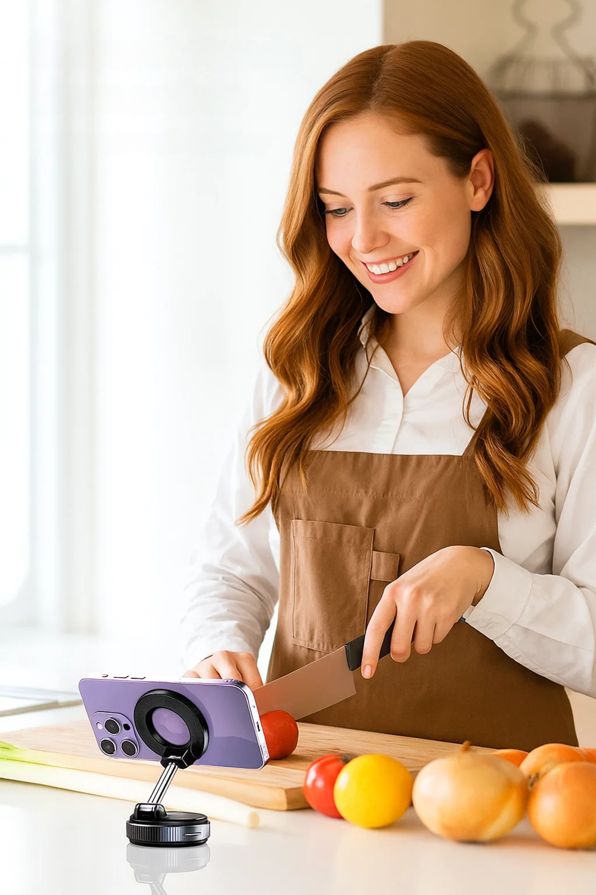 Stop trying to film while holding your phone. Snap it onto the magnetic mount and free your hands to focus. Cook unbox go live all without needing help.