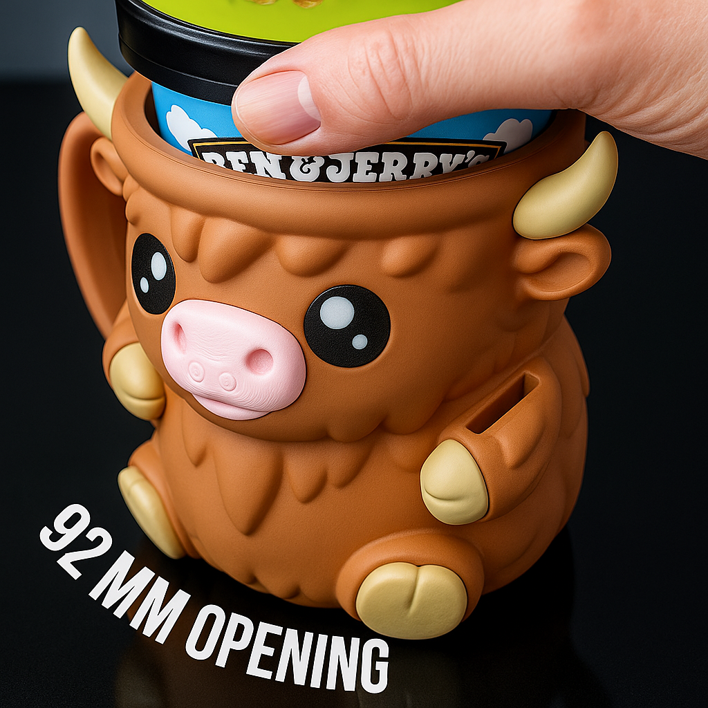 Shaped like a charming Highland cow, My Ice Cream Buddy isn’t just functional, it’s irresistibly cute. Perfect as a gift for kids, couples, or anyone who loves ice cream, it transforms dessert time into a delightful experience that ordinary containers can’t match.
