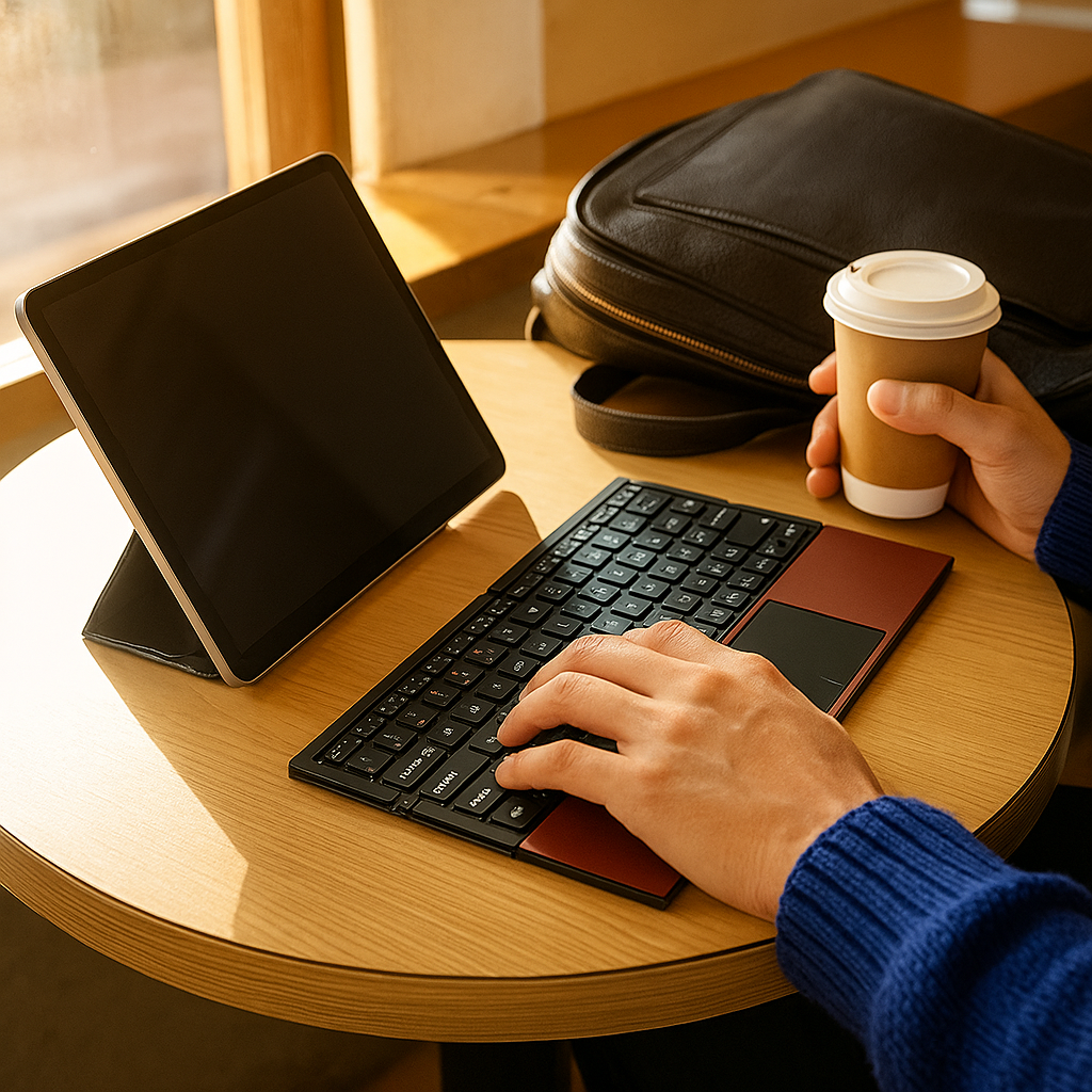 Yes! Its three-fold design makes it ultra-compact, so you can slip it into a bag or even a large pocket. It is perfect for travel, commuting, or working in cafés.
