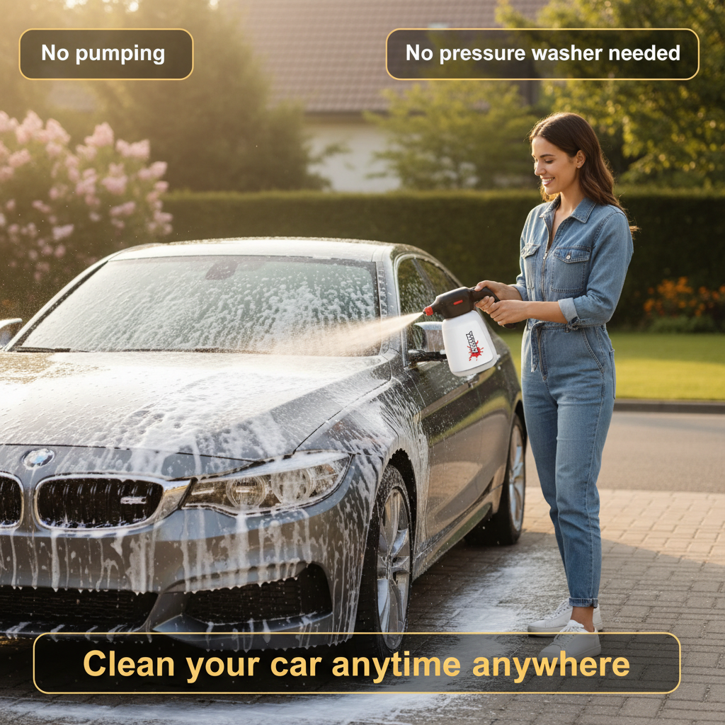Absolutely. The built-in electric pump creates thick, consistent foam at the push of a button no manual pumping or arm fatigue. You’ll cover your vehicle faster, clean more effectively, and enjoy a smoother, more effortless wash experience.