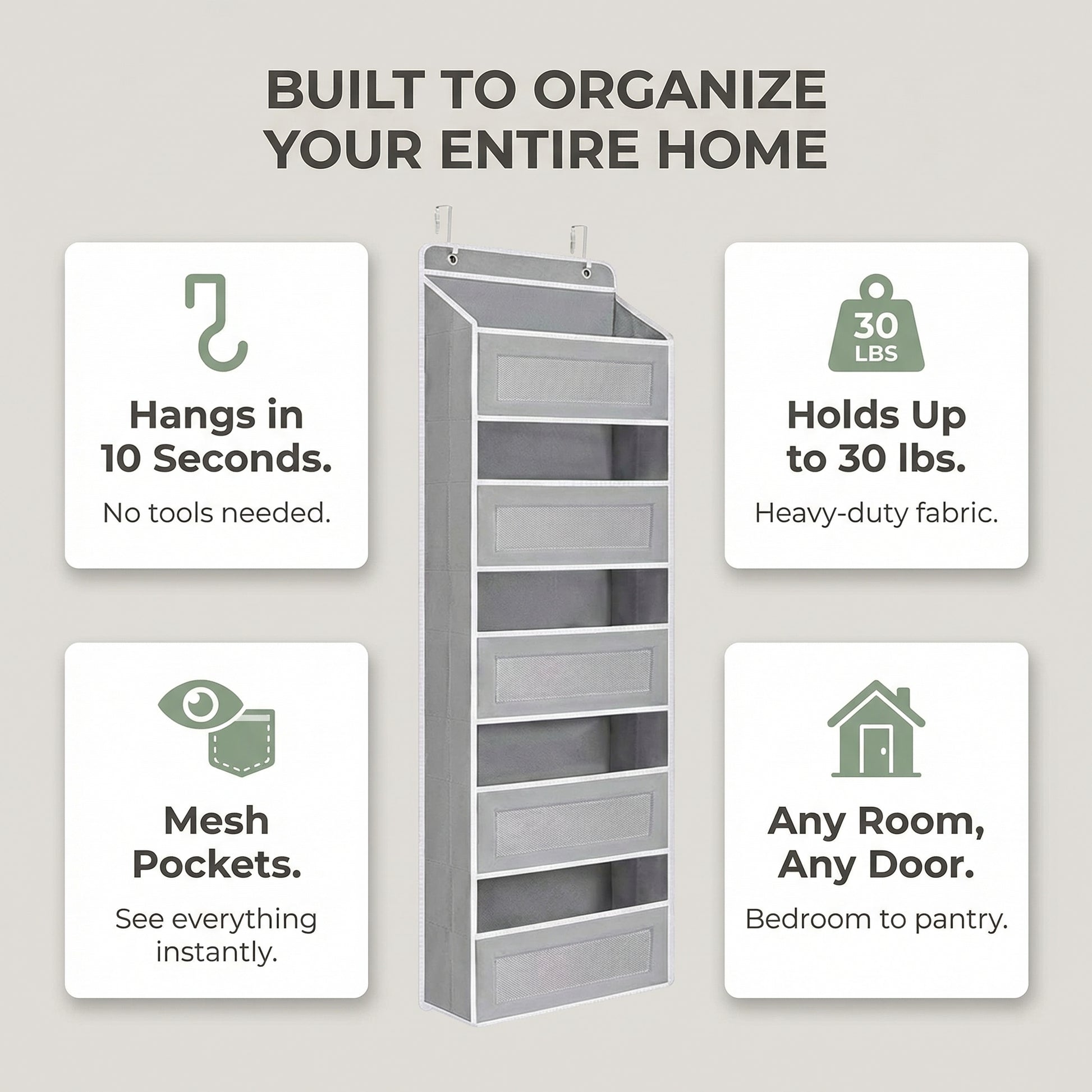 Works in Every RoomBathroom, bedroom, nursery, pantry, or dorm. One organizer fits every door in your home.