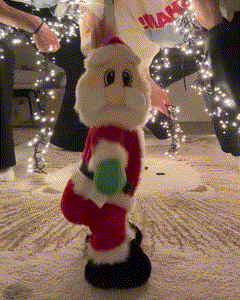 Our Twerking Santa is battery-operated and designed with a built-in motor that moves his body to the beat of popular holiday tunes. Just press the button, and he’ll start shaking his hips, bouncing to the music, and bringing holiday cheer with his animated movements!